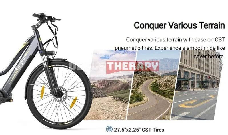 The Eleglide C1 ST version has a step through frame, while the other specs are the same as Eleglide C1, such as 250W motor, 14.5Ah battery and 150km range.