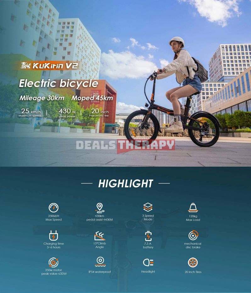 KuKirin V2 is the new 2024 electric bike for city. It has foldable design, 250W motor, 7.5Ah battery and 45km range. Compare the best deals from online stores.