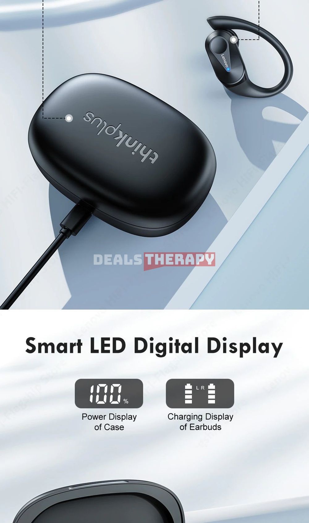 Buy Lenovo LP75 on Aliexpress, Alibaba, Banggood, Geekbuying. New wireless earbuds are designed for sports. They have Bluetooth 5.3, ear hooks.